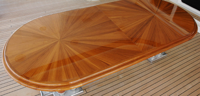 We design custom tables wih expertise in finishing and fitting for the interior and exterior of your yacht in all types of veneers and solid woods. Uniquely made per client.